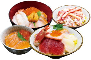 | 三種盛丼(まぐろ・サーモン・カニ・イカ・いくら) | 1,300円 |
